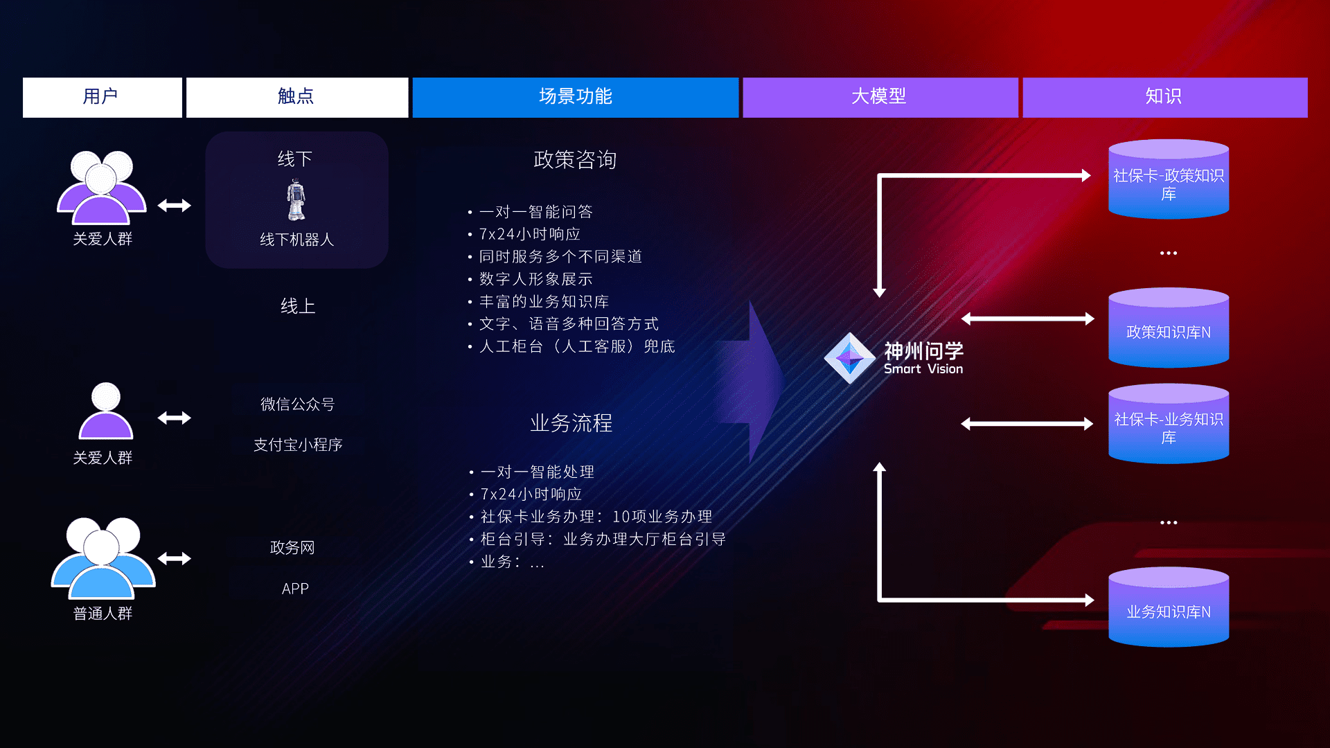 • 线上线下全覆盖:线上提供微信公众号、、、、支付宝小程序、、、政务网、、、app多种渠道,,,与线下机器人形成完整服务体系。。